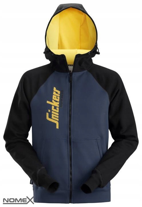 Bluza z kapturem z pełnym zamkiem błyskawicznym o dwukolorowej konstrukcji blokowej ze szczotkowaną stroną wewnętrzną, która zapewnia trwałość i wygodę. Wyposażona w kieszeń typu kangurka. Mieszanka bawełny i poliestru ze szczotkowaną stroną wewnętrzną. Pełny zamek błyskawiczny z gumowym zakończeniem, uchwyt na kciuk przy mankietach