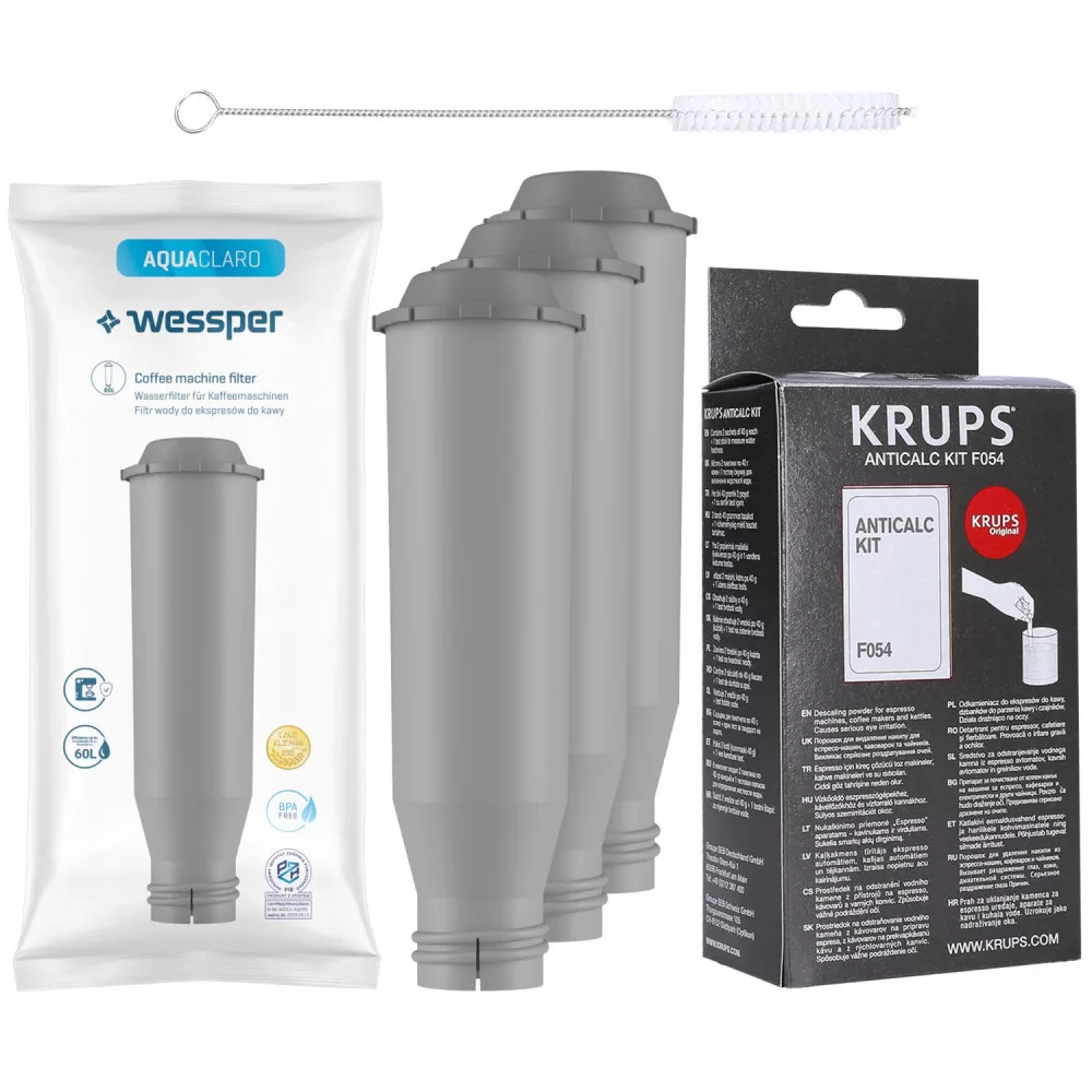 Filtr wody Wessper AquaClaro do wybranych ekspresów Krups i Nivona oczyszcza wodę z nadmiaru osadów oraz zwiększa żywotność urządzenia. Przed zainstalowaniem w ekspresie namocz filtr w wodzie przez 5 minut.