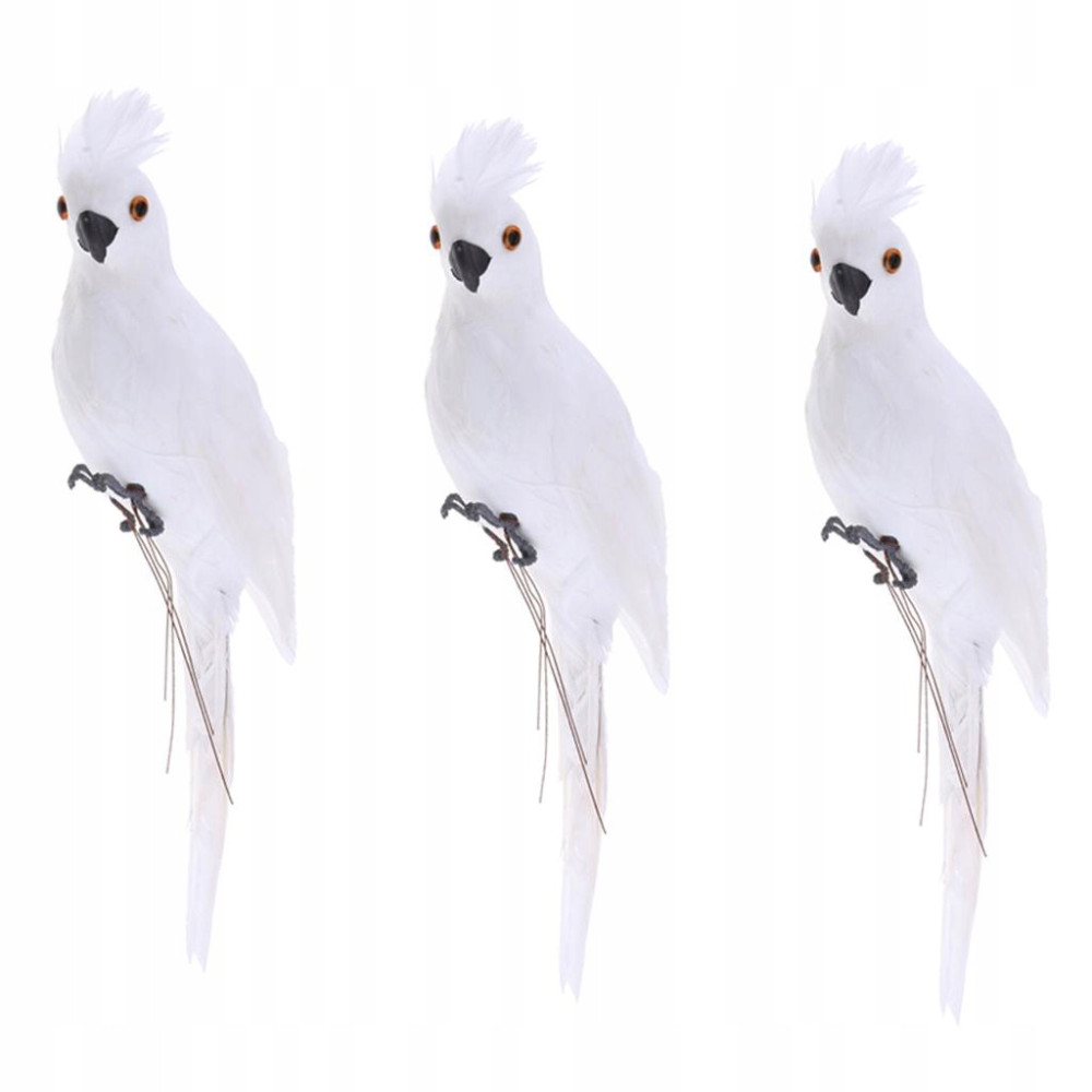3x realistyczna papuga ara sztuczne pióro ptak zwierzęca ozdoba zabawka biała