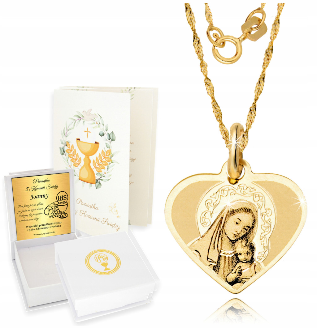 W przypadku zamówienia graweru na komunię, standardowo zapakujemy w pudełeczko komunijne oraz dodamy kartę Pamiątka Pierwszej Komunii Świętej - gratis