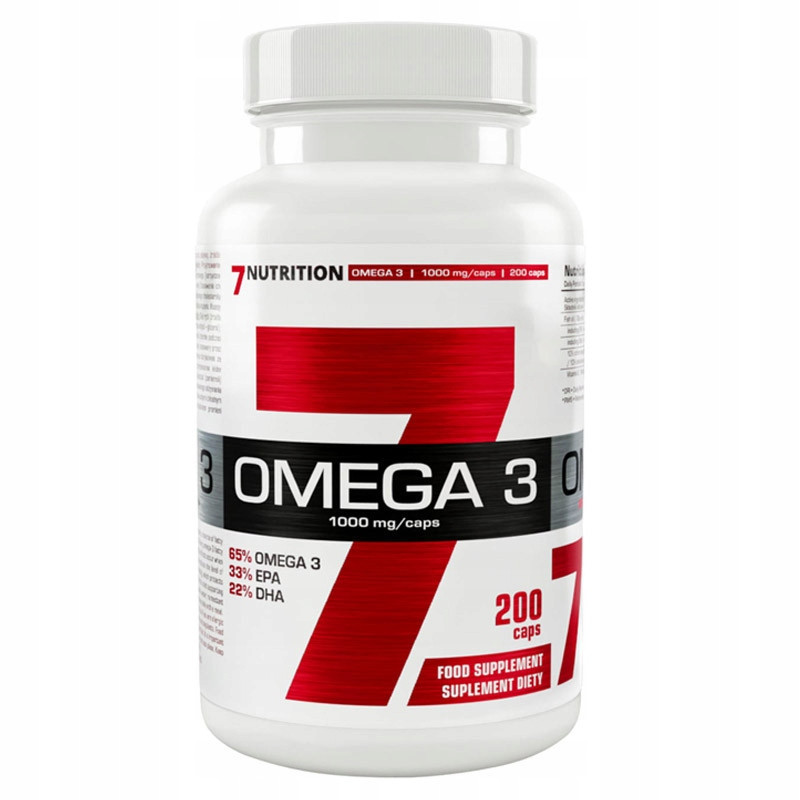 7NUTRITION Omega 3 to suplement diety zawierający wysokogatunkowy koncentrat olejowy, źródło kwasów tłuszczowych (EPA i DHA) z rodziny omega-3 w postaci kapsułek miękkich.