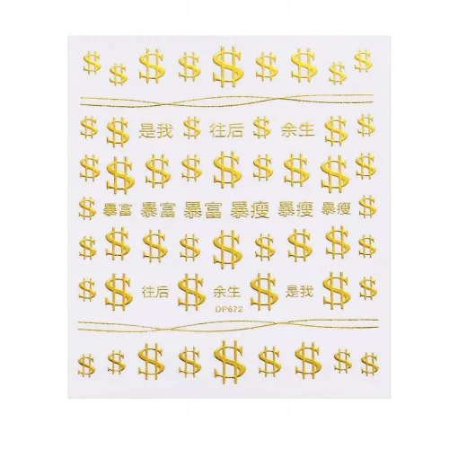 Złote naklejki 3D na paznokcie - DP672 Dollars