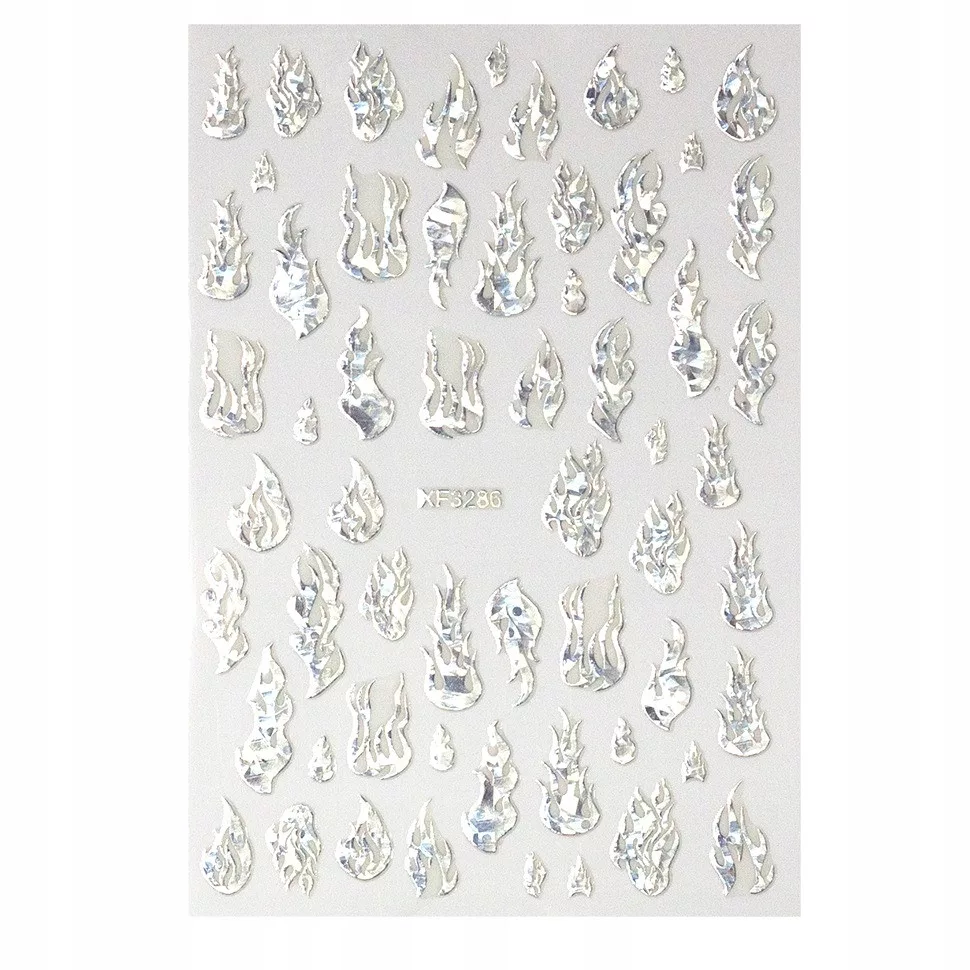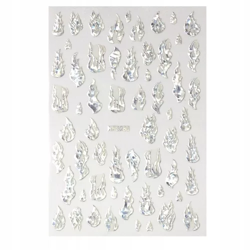 Naklejki na paznokcie - srebrne płomienie holo - XF3286 - 2