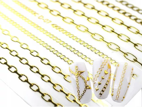 Samoprzylepne złote naklejki 3D na paznokcie - złote łańcuchy łańcuszki ⭐⭐⭐⭐⭐