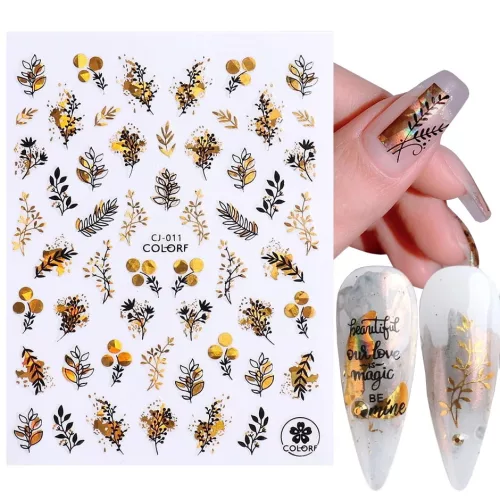 ADESIVI PER UNGHIE ORO PER PIANTE FOGLIE MANICURE Ramoscelli CJ-011