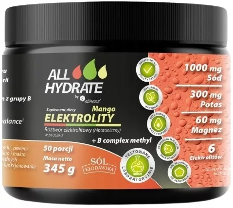 ALLHydrate jako pierwszy produkt elektrolitowy na rynku zawiera naturalne źródło sodu jakim jest naturalna, kamienna sól z kopalni Kłodawa (niejodowana). Pierwiastki występujące w soli kłodawskiej są łatwo przyswajalne, a ich zawartość wspomaga prawidłowe funkcjonowanie organizmu człowieka. Są one pochodzenia naturalnego i powstały w wyniku wytrącenia z wody morskiej ok 257-252 mln lat temu. Dzięki tradycyjnym sposobom jej rozdrobnienia, sól nie traci swoich właściwości. Sól kamienna z Kłodawy zawiera składniki niezbędne do prawidłowego funkcjonowania organizmu ludzkiego. Obecne są przede wszystkim makroelementy: Ca, Mg, Na, Cl, S oraz mikroelementy: Fe, I, Cr, Se, Cu, Zn, Mn.