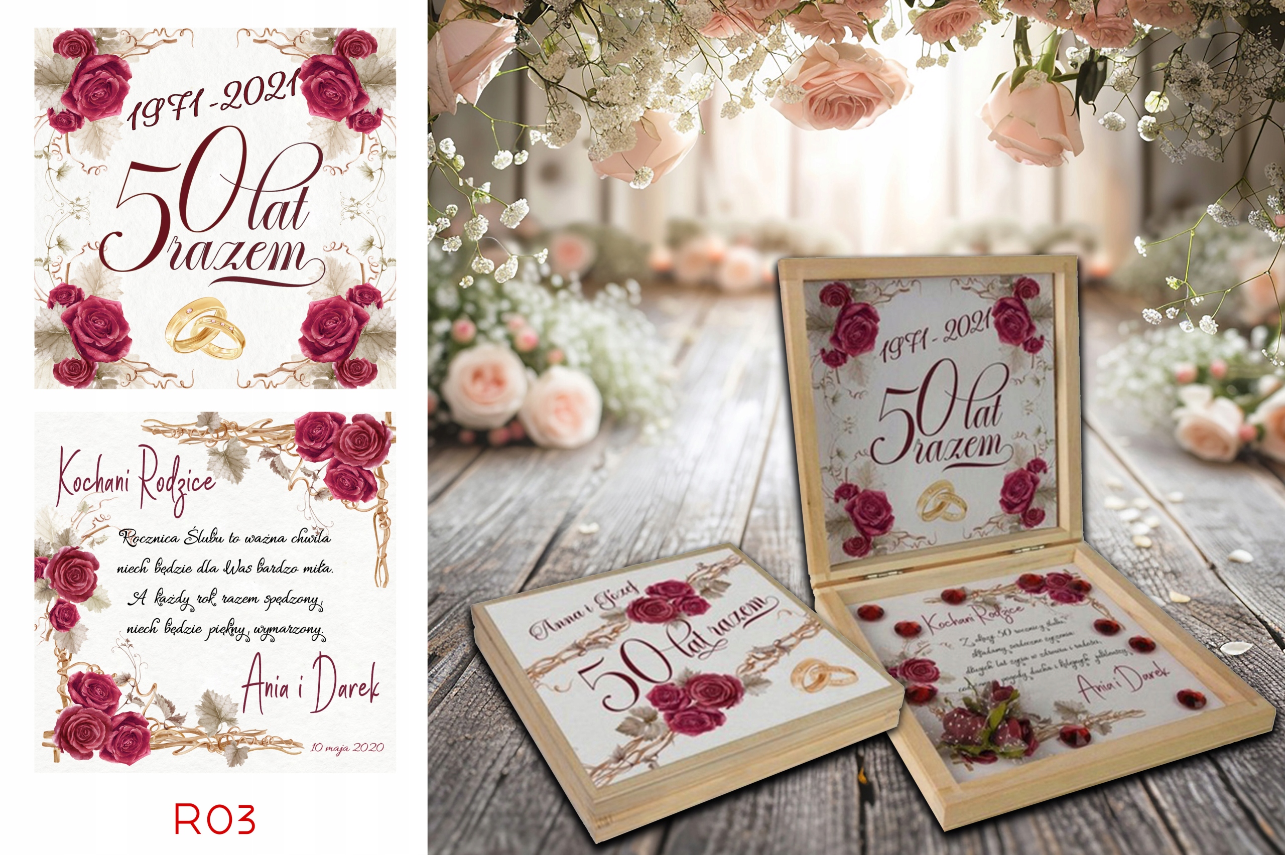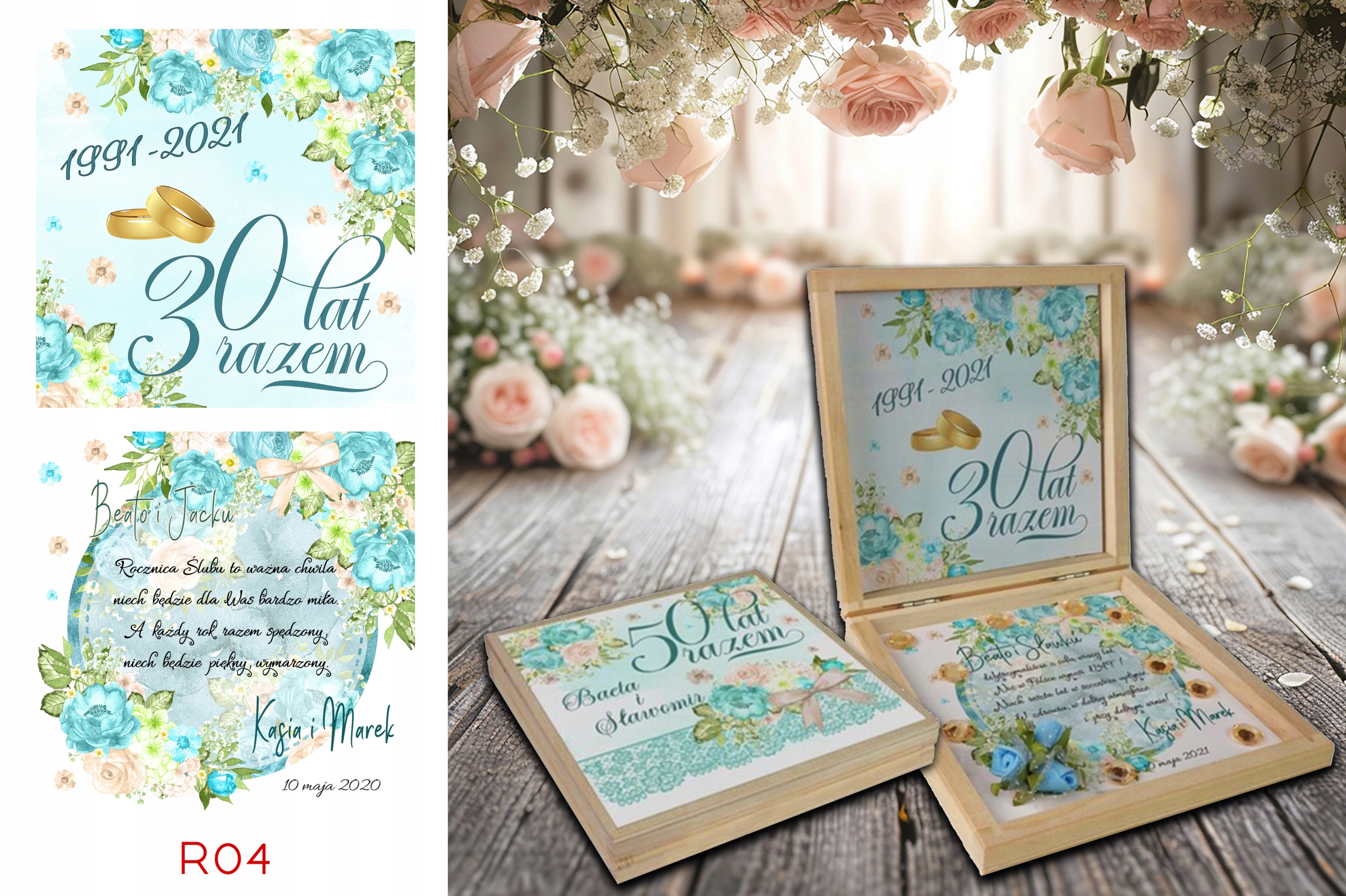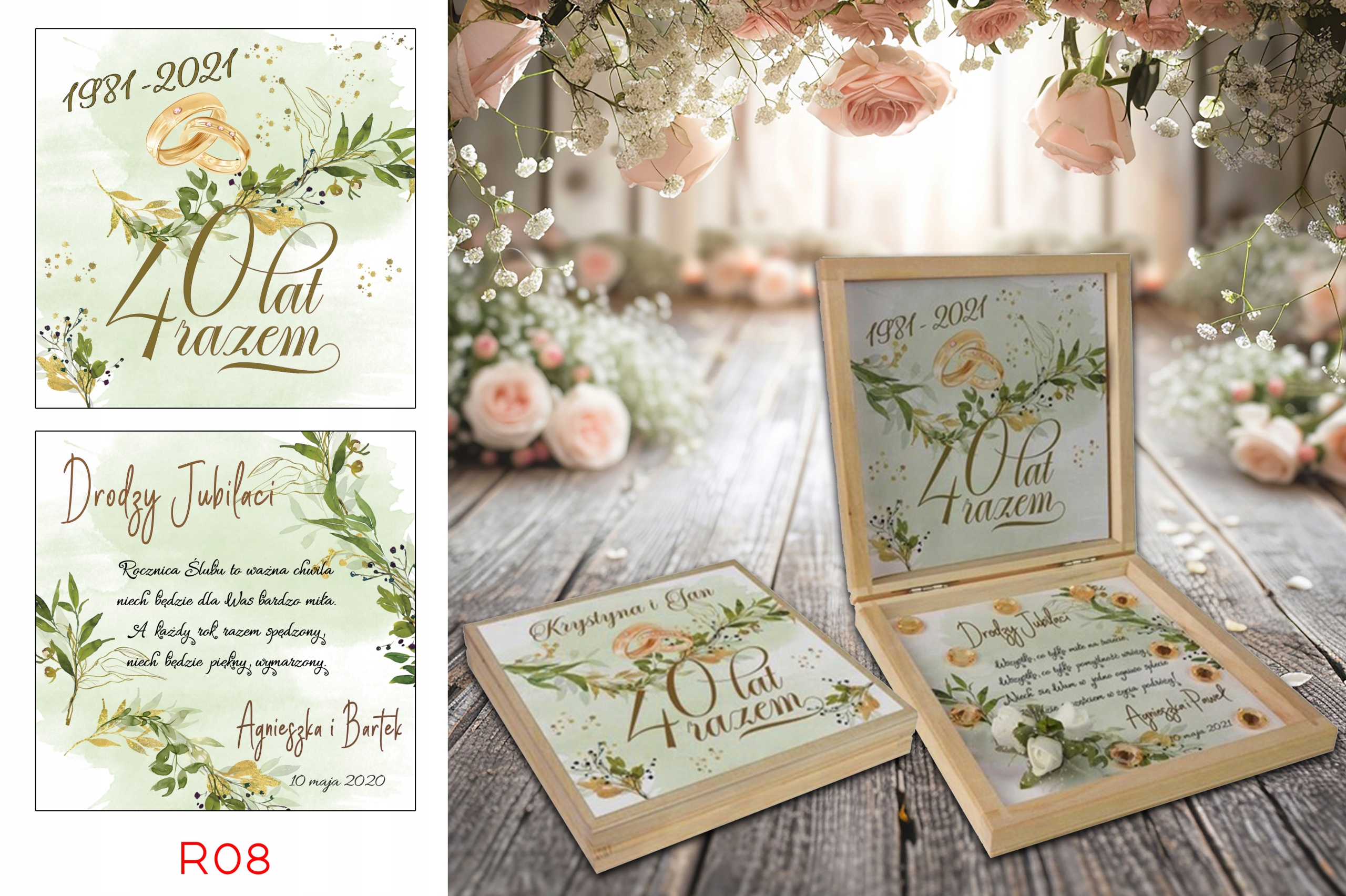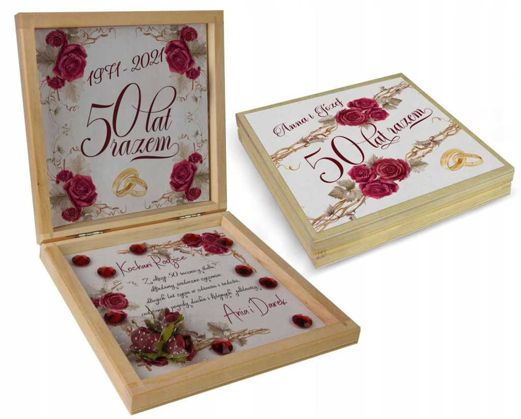 Prezent z okazji Jubileuszu w drewnianym pudełku z personalizowanym tekstem.