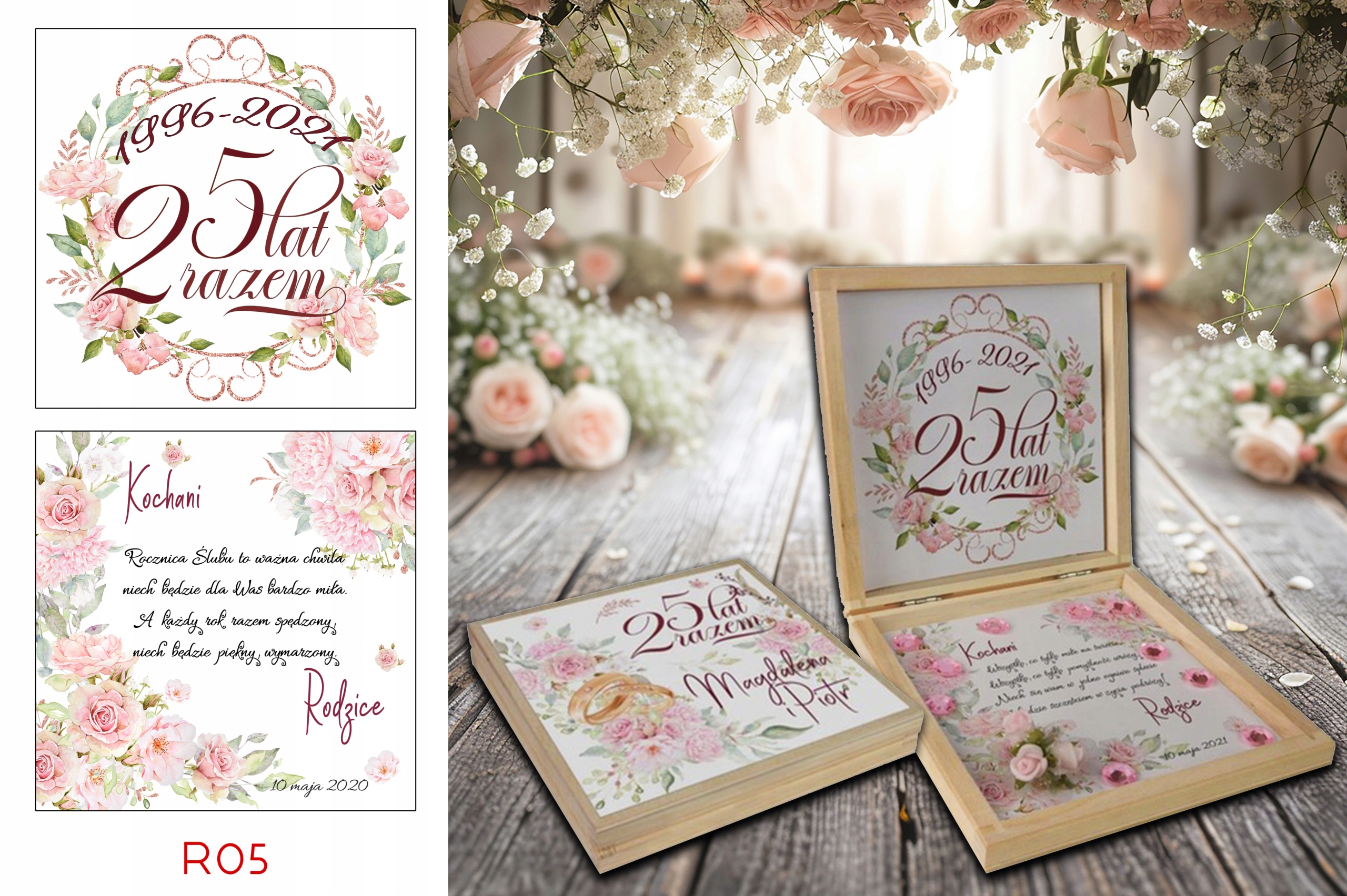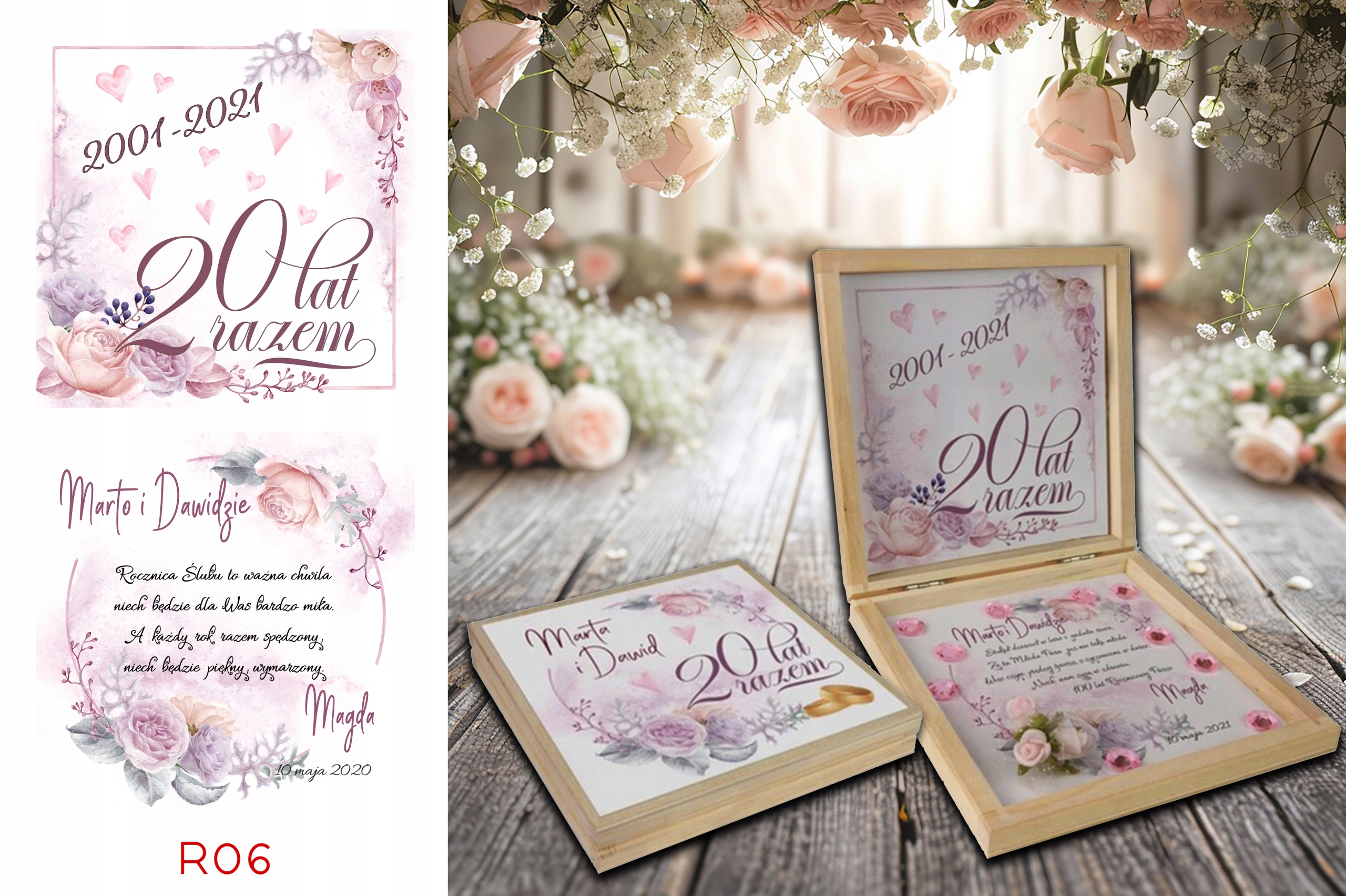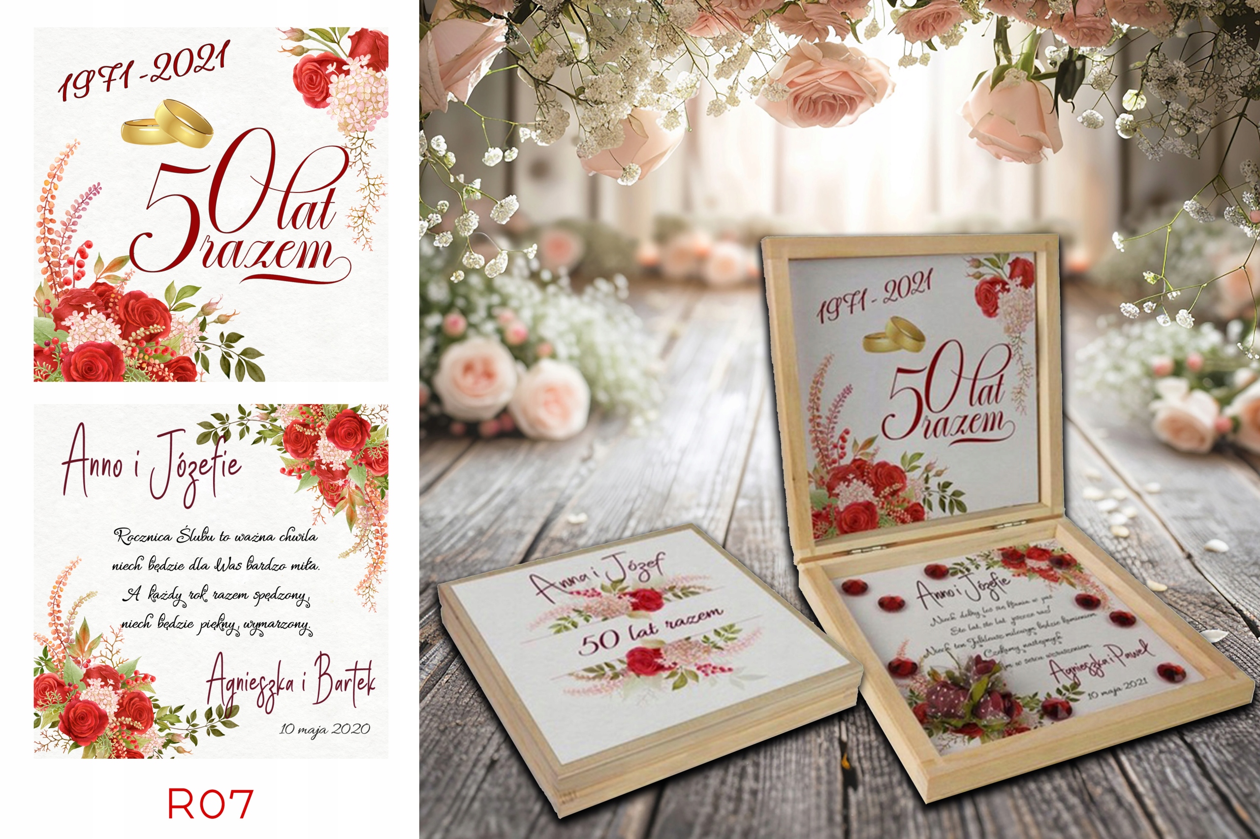 Prezent z okazji Jubileuszu w drewnianym pudełku z personalizowanym tekstem.