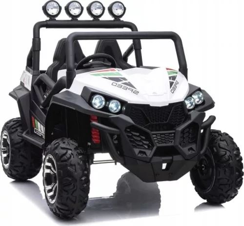 Pilot działający na częstotliwości 2.4 Ghz - z funkcją parowania - to oznacza że żadne inne urządzenia nie będą go zakłócały, pilot posiada 3 prędkości jazdy z pilota i funkcję natychmiastowego awaryjnego zatrzymania pojazdu - ( przycisk P, po jego naciśnięciu blokują się wszystkie funkcje manualne w pojeździe - jest to bardzo dobra funkcja jeśli musimy natychmiast zatrzymać pojazd i zablokować funkcje Małemu Kierowcy.