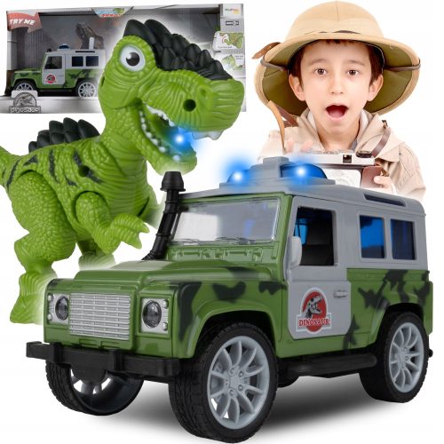 Zasilanie: dinozaur: 3xAAA (brak w zestawie); jeep: 3xLR44 (w zestawie)