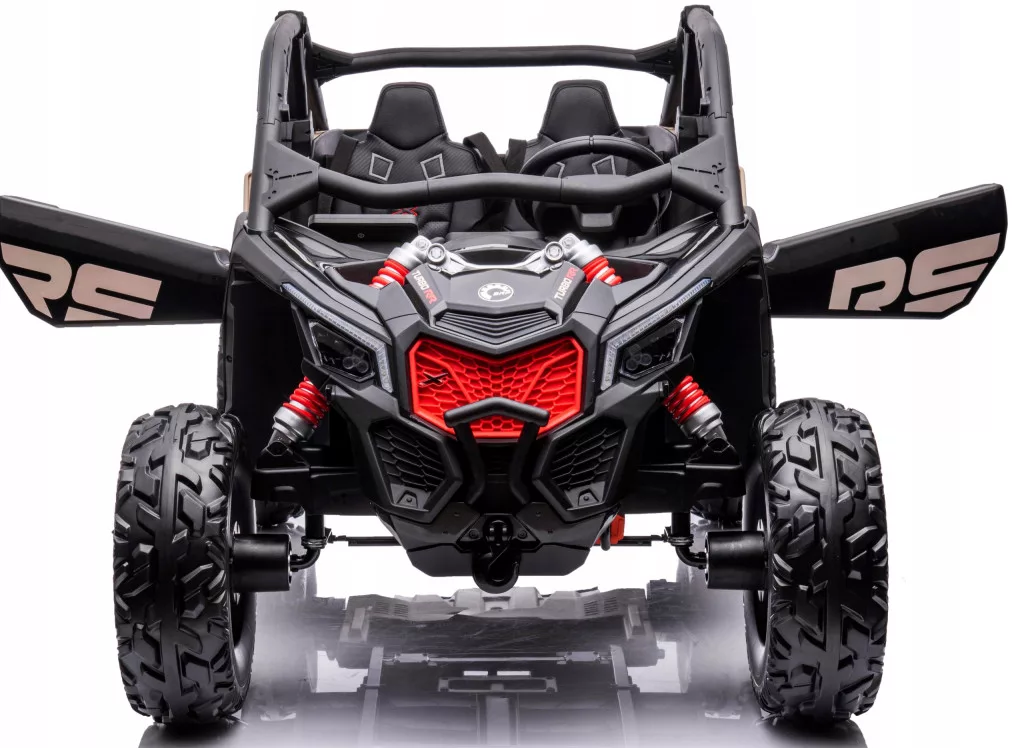 Auto na akumulator dla dziecka CAN AM MAVERIC TURBO RR napędzany jest czterema mocnymi silnikami 24V każdy o mocy 200W zasilany dwoma akumulatorami o łącznej mocy 24V 14Ah akumulatorem.