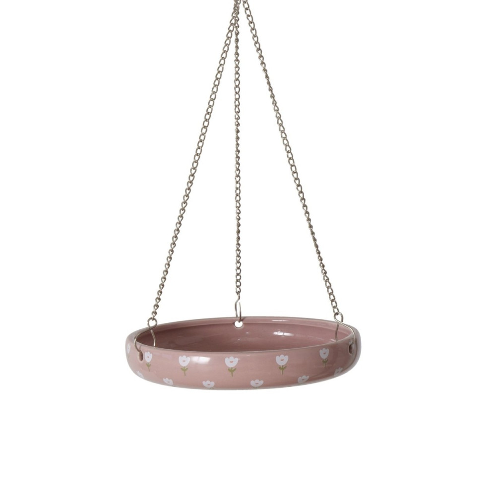 Ceramiczne poidełko do powieszenia, ozdobione motywem kwiatowym, idealne do udekorowania ogrodu, altany, tarasu, balkonu lub dowolnej przestrzeni wokół domu
