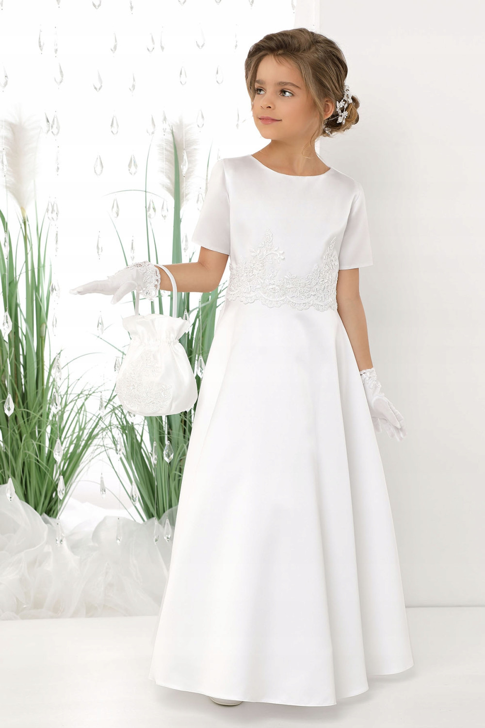 Sukieneczka uszyta z satyny ślubnej w kolorze białym.