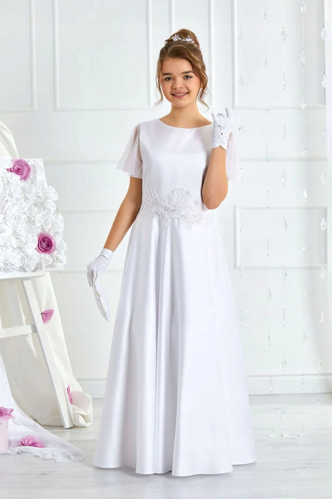 Górą sukieneczka uszyta z satyny ślubnej w kolorze białym.