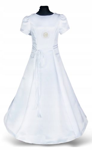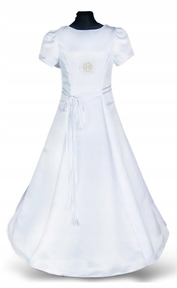 • Zdobienia - Szyfonowo- satynowa tasiemka przepasająca- (możliwość zawiązania kokardki z tyłu lub z przodu) lub na życzenie doszyta na stałe. Emblemat IHS (w standardzie srebrny lub inny wybrany przy zakupie) .