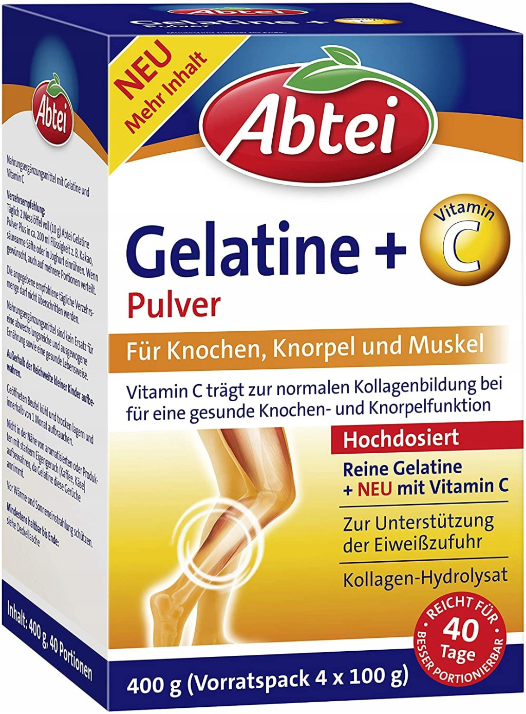 ABTEI GELATINE PULVER + WITAMIN C jest wytwarzana z naturalnych surowców, dlatego jej smak i zapach mogą się różnić w zależności od opakowania. Nie ma to żadnego wpływu na skład aminokwasów.