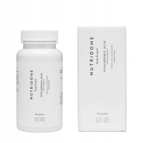 Suplement diety Kwas Hialuronowy Nutridome to esencja młodości i nawilżenia dla skóry. Ten składnik, kluczowy dla utrzymania sprężystości i elastyczności skóry, znajduje się w postaci niskocząsteczkowego hialuronianu sodu.