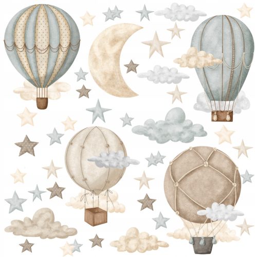 Niepowtarzalne naklejki na ścianę do pokoju dziecięcego / chłopięcego - zestaw z balonami, gwiazdkami, chmurkami i księżycem, które pięknie ozdobią każdą ścianę!