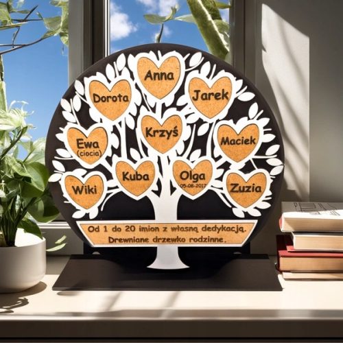 Zbliża się Dzień Babci i Dziadka, albo Rocznica ? Drewniane rodzinne drzewo genealogiczne będzie idealnym prezentem. Proszę o wybranie liczby imion (możliwe 1-20) oraz podanie imion.