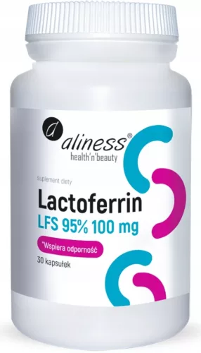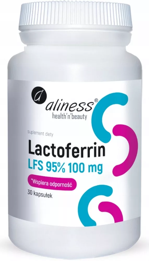 Składniki: Laktoferyna 95% (z mleka), witamina C (kwas l-askorbinowy), otoczka kapsułki: (substancja wiążąca: Hydroksypropylometyloceluloza).