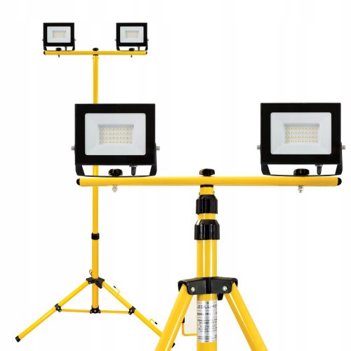 Uniwersalny teleskopowy statyw typu tri-pod z regulowaną blokadą rozstawu, przeznaczony do zamontowania dwóch naświetlaczy, stanowi idealne uzupełnienie naszego zestawu. Produkt posiada solidną stalową konstrukcję oraz szeroką opcję regulacji wysokości, co pozwala dostosować oświetlenie do różnych zastosowań. Statyw znakomicie sprawdzi się w pracach remontowych, warsztatowych, budowlanych, a także podczas imprez plenerowych oraz wielu innych działań, które wymagają dobrze doświetlonej przestrzeni.