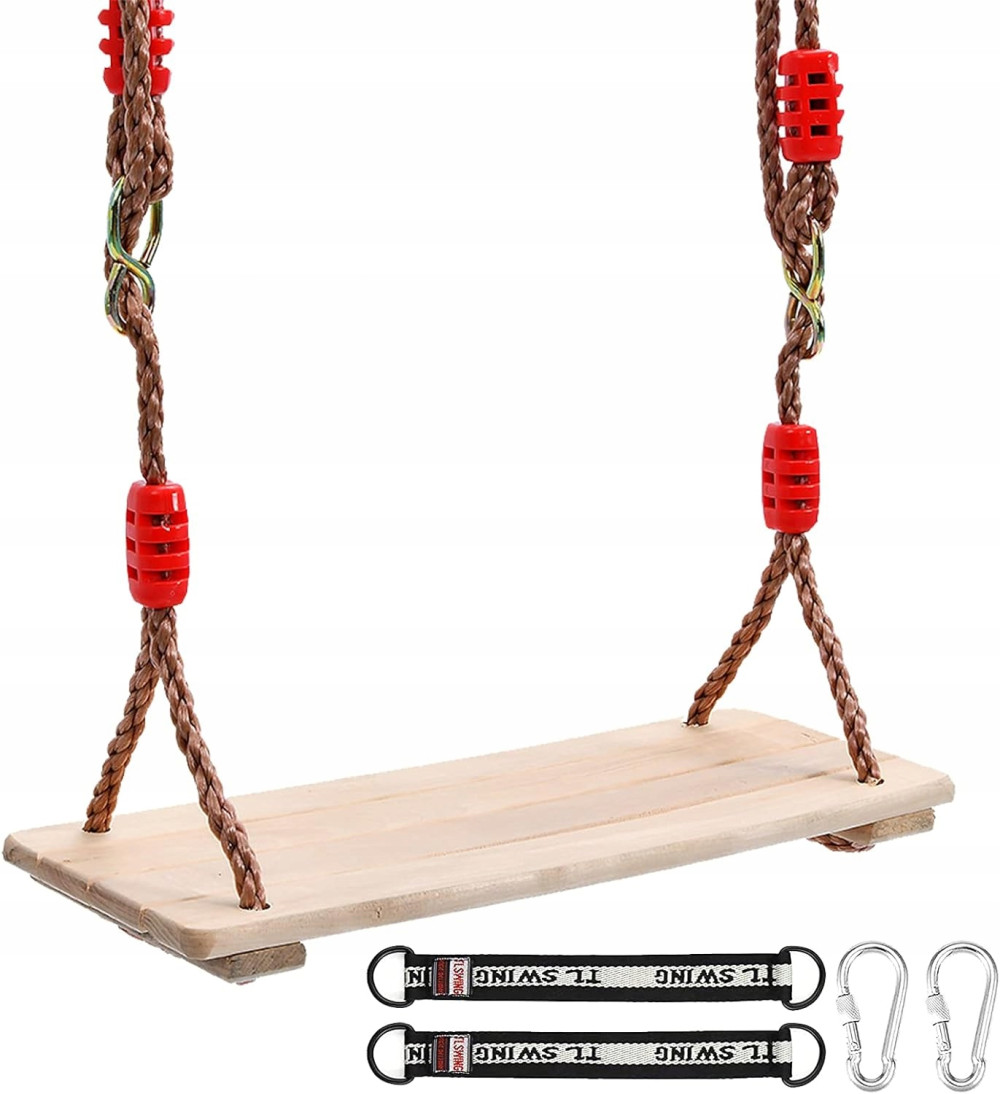 ⭐️Bezpieczna konstrukcja: Solidne drewniane siedzisko oraz mocna linka zapewniają stabilność i bezpieczeństwo podczas huśtania się, nawet przy obciążeniu do 100 kg.