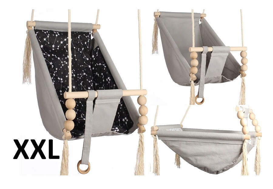 Huśtawka Leżaczek 3 w 1 - XXL dla dzieci jest w 100% ekologiczna, wykonana z naturalnych materiałów, oddychająca i przewiewna. Została wykonana z dwóch warstw bawełny, o niespotykanej na rynku gramaturze 270 gr/m2, charakteryzująca się podwójnym splotem płóciennym, w związku z czym tkanina jest stabilna w obu kierunkach..
