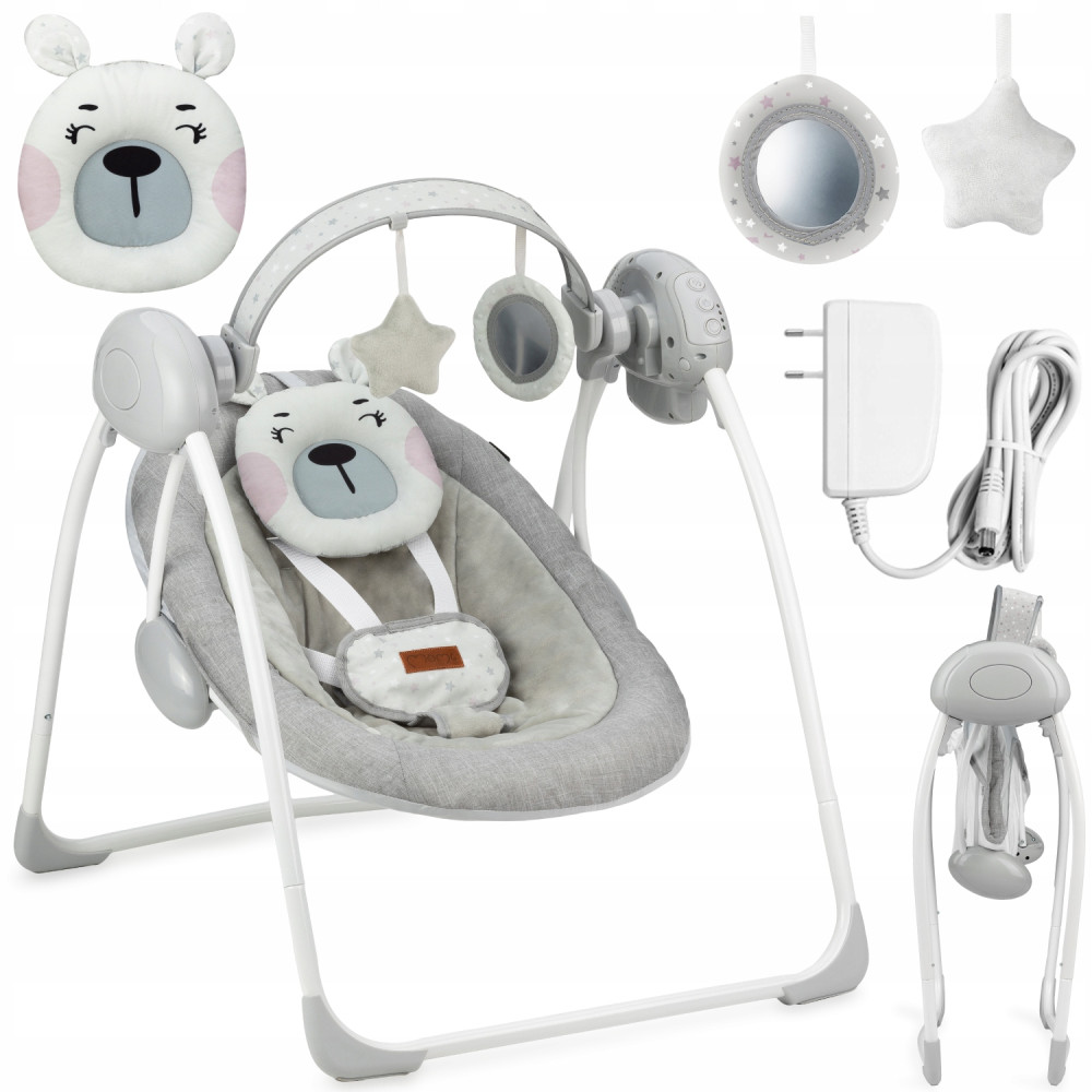 MoMi LISS posiada moduł sensoryczny wyposażony w 8 przyjemnych melodii, które ukoją Twojego Malucha. Panel sterowania jest wyposażony w regulator bujania, do wyboru jest 5 prędkości.