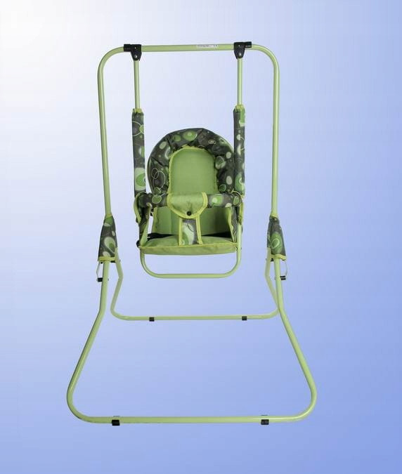 Huśtawka wolno stojąca idealna do domu jak i ogrodu. Bezpieczna metalowa konstrukcja, bardzo wytrzymała. Może też pełnić funkcję kołyski lub krzesełka do karmienia
