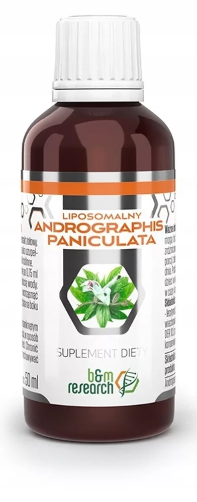 Składniki: woda, substancja emulgujaca – lecytyna (z soi), ekstrakt z liści brodziuszki wiechowatej (Andrographis paniculata) DER 10:1, przeciwutleniacz: alfa-tokoferol, konserwant: sorbinian potasu.