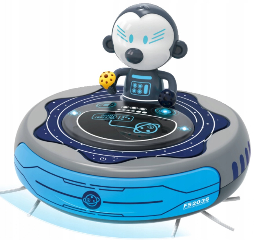Najnowszy odkurzacz dla dzieci został wykonany na wzór prawdziwych robotów sprzątających. Dzięki zamocowanym od spodu kółkom potrafi samodzielnie jeździć po podłodze i odbijać się od przeszkód. W trakcie zabawy odtwarza wesołe melodie i świecą się światełka.