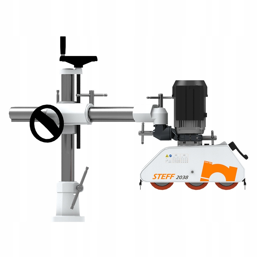 Łatwy w montażu, stabilny i mocny. Stopa, krzyżak, rura, przegub i kołnierz wykonane są z żeliwa a dwie kolumny ze stali rektyfikowane o znacznej grubości. Stalowe uchwyty oraz kółka regulacyjne umożliwiają szybkie i dokładne pozycjonowanie.