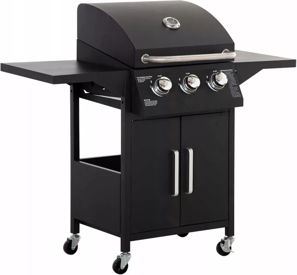 ✔️ Wprowadź więcej smaku podczas grillowania dzięki temu gazowemu grillowi BBQ firmy Outsunny! Grill jest wyposażony w 3 nierdzewne palniki i wytrzymałą obudowę ze stali węglowej. Dzięki specjalnej konstrukcji pokrywki zachowane są pyszne aromaty dymu, a dwie półki służą do utrzymania talerzy, przypraw i przyborów do grillowania zawsze pod ręką. Dzięki 4 lekko obracającym się kółkom grill można wygodnie przenieść w inne miejsce, aby nadejść następny sezon grillowy! ✔️
