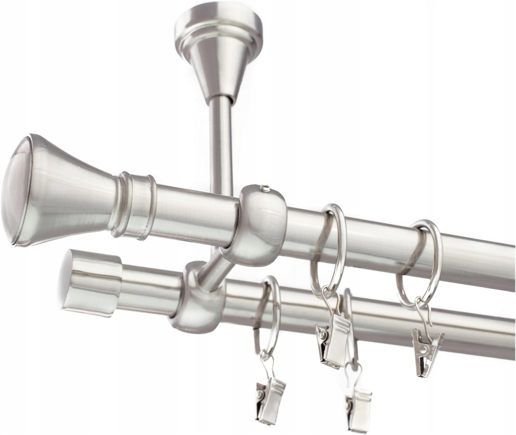 Nawet najbardziej gustownie urządzony salon, kuchnia czy sypialnia nie może się obejść bez aranżacji okien. Decydując się na KARNISZ SUFITOWY STAL SREBRNY FI 19mm 300cm PODWÓJNY w kolorze stalowym mamy możliwość zawieszenia zasłon lub firanek. Oferowane przez nas karnisze są wysokiej jakości oraz proste w montażu. Karnisz jest galwanizowany oraz zabezpieczony przed ścieraniem oraz rdzewieniem.