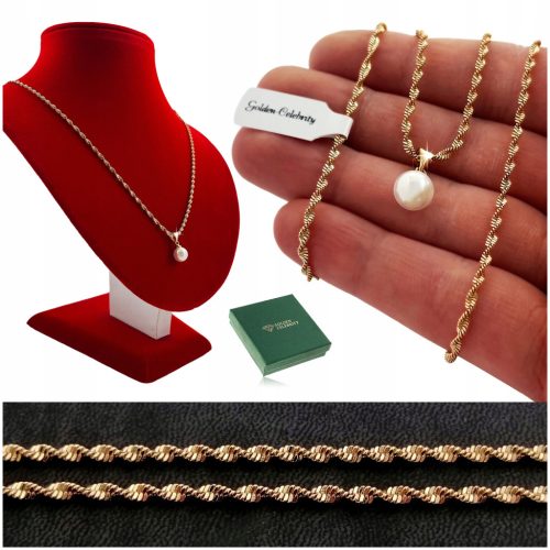 ✨ Przedstawiamy państwu zjawiskowy damski naszyjnik na łańcuszku singapur wraz z pięknym wisiorkiem z lśniącą perłą. Produkt został wykonany z najwyższej jakości stali chirurgicznej.