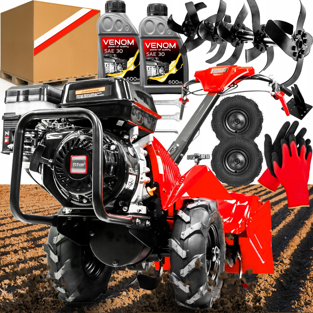 ⭐ Glebogryzarka posiada koła transportowe, ułatwiające przemieszczanie się oraz regulowaną wysokość dźwigni sterującej, dzięki której można dostosować wysokość do wzrostu użytkownika.