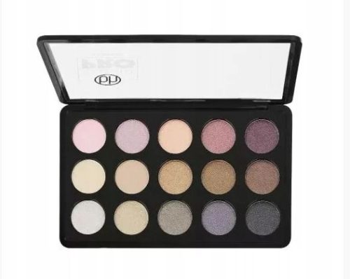 Paleta 15 intensywnych cieni utrzymanych w stonowanej kolorystyce. Cienie aplikowane na sucho dają efekt perłowy efekt, aplikowane mokrym pędzlem umożliwiają uzyskać multiwymiarowe, metaliczne wykończenie.