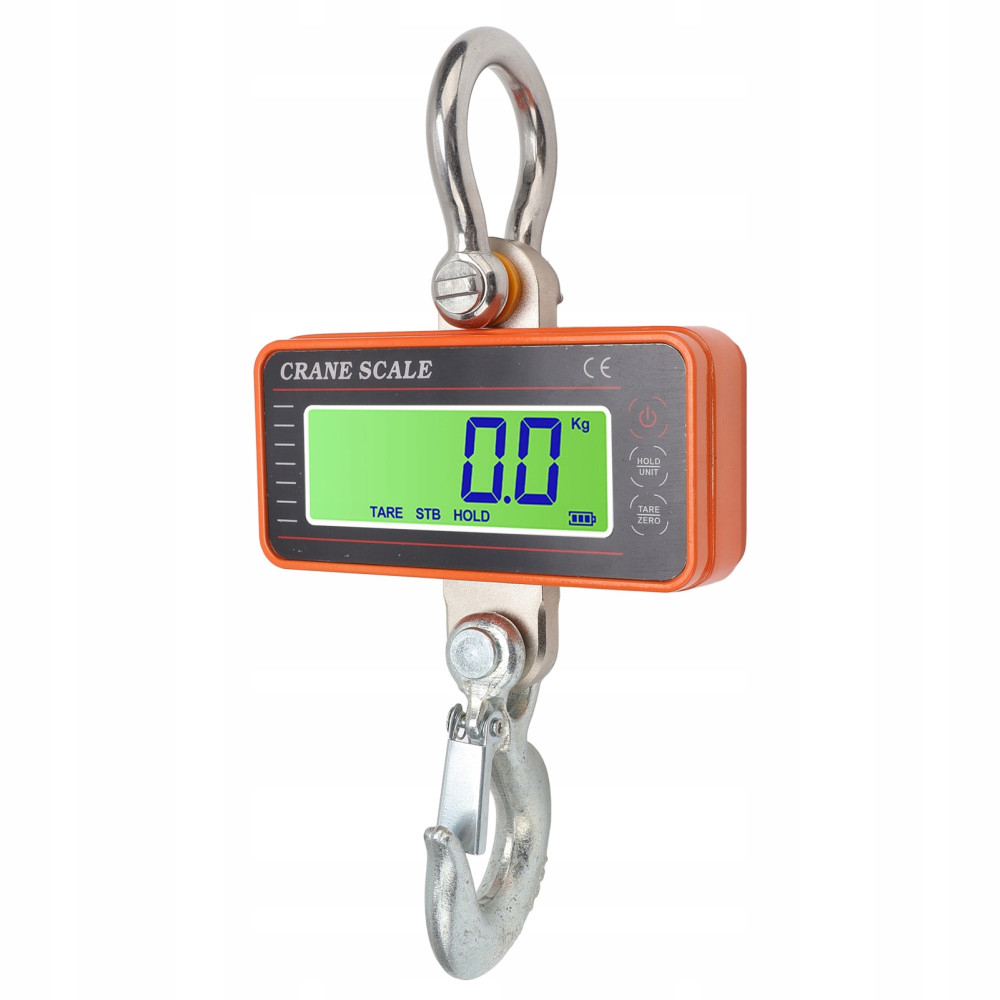 3. WAŻENIE CIĘŻKICH: Przemysłowa waga wisząca do dużych obciążeń przyjmuje gruby karabińczyk, trwały o dużej nośności