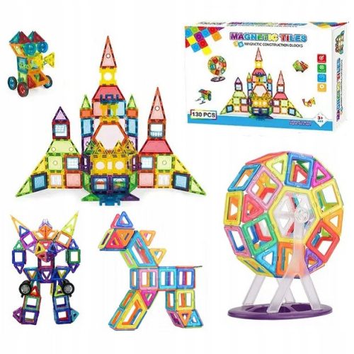 Ten zestaw klocków magnetycznych otwiera przed dziećmi nieograniczone możliwości budowania. Dzięki różnorodnym kształtom elementów – kwadratom, trójkątom, pięciokątom i innym figurom – można tworzyć zarówno proste, płaskie wzory, jak i złożone, przestrzenne konstrukcje. Zabawa tymi klockami pozwala budować np. domy, wieże, pojazdy, a nawet modele 3D, takie jak kule, piramidy czy figury geometryczne.