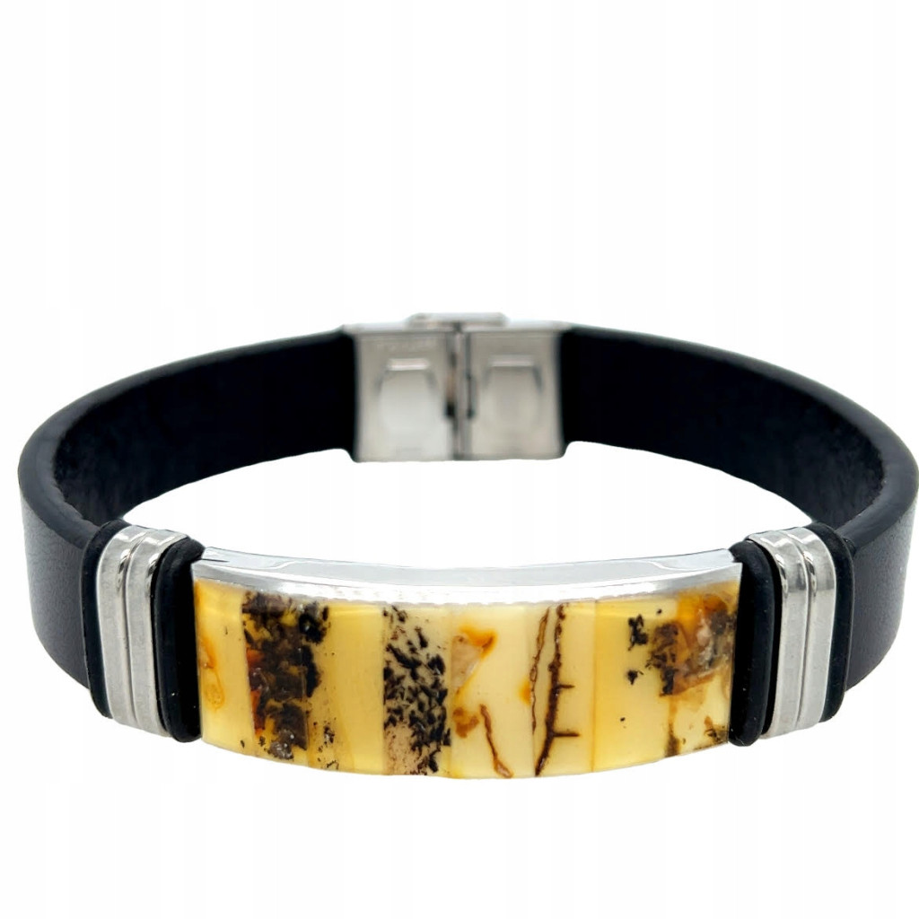 MĘSKA BRANSOLETA BURSZTYN I SKÓRA, SZCZEGÓŁY: