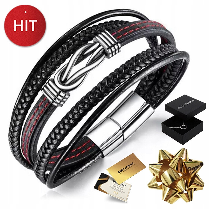 Wykonana z wysokiej jakości stali szlachetnej, pokrytej warstwą srebra (najwyższej próby - 925) oraz prawdziwej plecionej skóry jagnięcej
