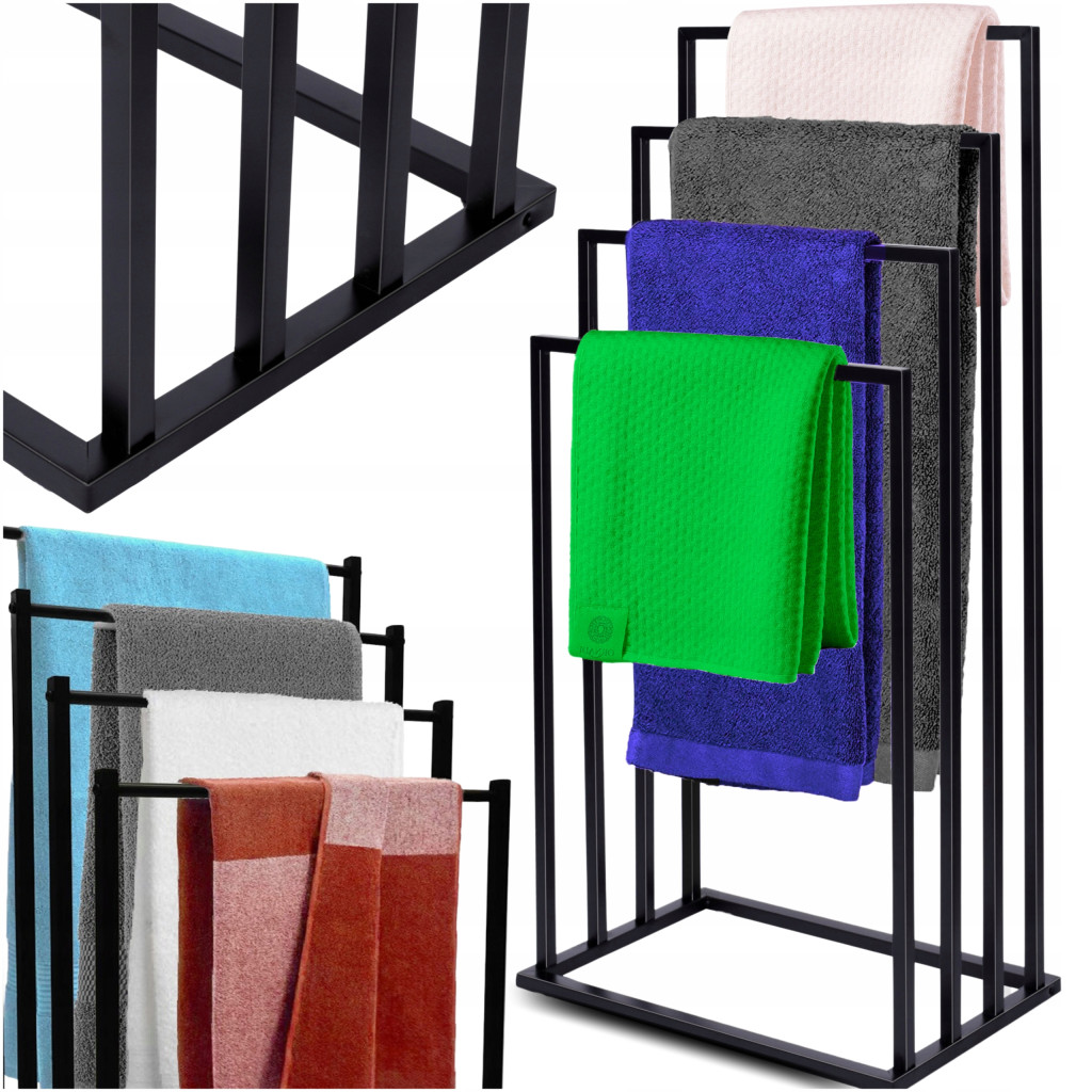 STOJAK NA RĘCZNIKI ŁAZIENKOWE UCHWYT WIESZAK METALOWY LOFT CZARNY 4 POZIOMY