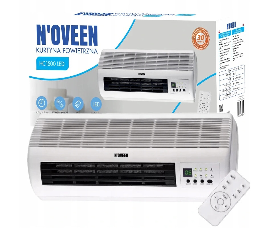 Kurtyna powietrzna HC1500 LED to urządzenie o dwóch zakresach mocy 1000 Wat lub 2000 Wat. Zapewnia pionowy strumień powietrza (do wyboru: zimne, ciepłe, gorące) przy wejściach do mniejszych pomieszczeń, sklepów, biur. Doskonale sprawdzi się także w użytku domowym. Urządzenie wyposażone jest w wyświetlacz LED oraz pilot zdalnego sterowania.