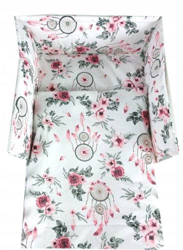 Zewnętrzna tkanina to 100% bawełna. Posiada 8 troczków(góra dół) do zamocowania go do łóżeczka.