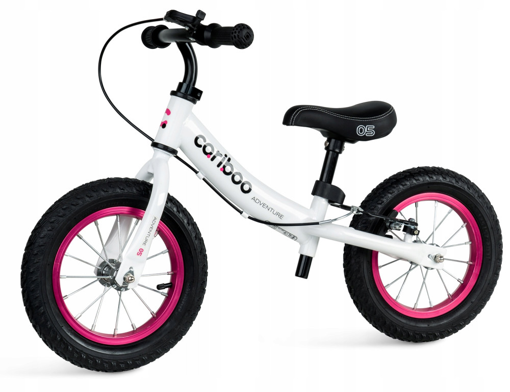 Koła pompowane czy piankowe? Rowerek Cariboo Adventure posiada koła pompowane, które mają wiele zalet. Doskonale amortyzują oraz tłumią wstrząsy, dzięki czemu jazda po nierównościach jest przyjemniejsza. Bieżnikowana, gumowa opona, zapewnia dużą stabilność oraz przyczepność, czego nie da się uzyskać w kołach piankowych. Koła w rowerku Adventure mają dodatkową zaletę: posiadają aluminiowe obręcze, które są lżejsze od obręczy ze stali. Pamiętaj jednak, że koła pompowane są cięższe od tych z pianki EVA. Jeśli szukasz najlżejszego rowerka, wybierz model z kołami piankowymi.