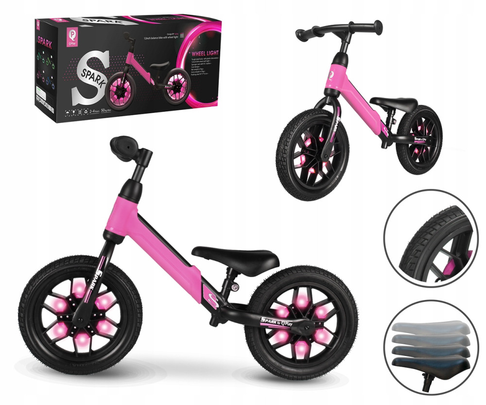 Rowerek Spark od marki Qplay to idealna propozycja dla dzieci które rozpoczynają naukę jazdy oraz tych już potrafiących jeździć na rowerku biegowych. Spark to wyjątkowy rowerek biegowy który nie tylko zachwyca wyglądem. Rowerek wyposażony jest w efektowne kółeczko które świeci podczas jazdy co wpłynie pozytywnie na małego cyklistę. Rowerek łączy w sobie najwyższą jakość z wyjątkowym designem.