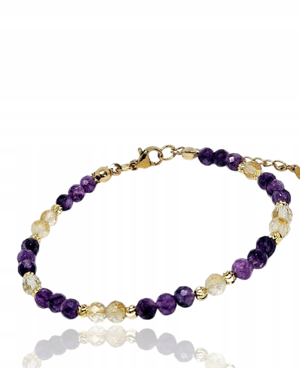 Bransoletka wykonana z kamieni naturalnych ametystu oraz oraz cytrynu.
