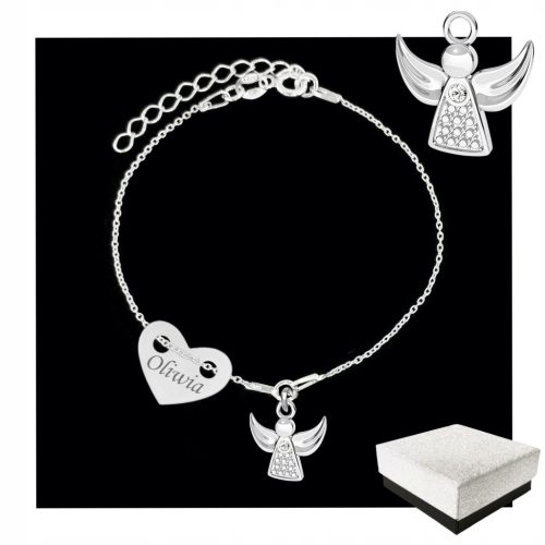 Przedmiotem oferty jest srebrna bransoletka z aniołkiem i sercem pod grawer. Niepowtarzalny prezent dla dziewczynki na każdą okazję. Idealny prezent na komunię, chrzest i inną okazję!