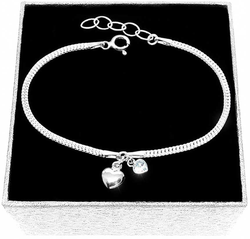 Bransoletka srebrna z modnymi zawieszkami w kształcie wypukłych Serduszek - jedno o gładko polerowanej powierzchni, drugie z cyrkonią koloru białego o diamentowym szlifie.