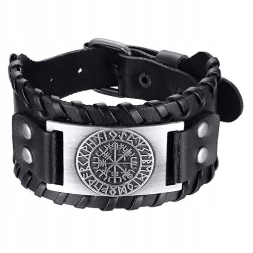 Elegancka, stylowa bransoleta wykonana z wysokiej jakości skóry w kolorze czarnym oraz stopów metali, z których stworzone są detale produktu element ozdobny oraz zapięcie). Bransoleta posiada wygodne i komfortowe zapięcie na dziurki, dzięki któremu istnieje możliwość regulacji obwodu bransoletki. Ozdobny detal w kolorze srebrnym idealnie komponuje się ze skórzanym paskiem oraz obszyciem w postaci czarnego rzemyka. Nietuzinkowy, przeplatany charakter bransolety stanowi świetny dodatek do każdego typu kreacji. Całość wykonana z ogromną precyzją oraz starannością o detale, z najwyższej jakości materiałów. Zaprojektowane w sposób jak najwyższego komfortu noszenia. Jej unikalny i wyjątkowy wzór sprawią, że nada się ona idealnie również jako prezent.